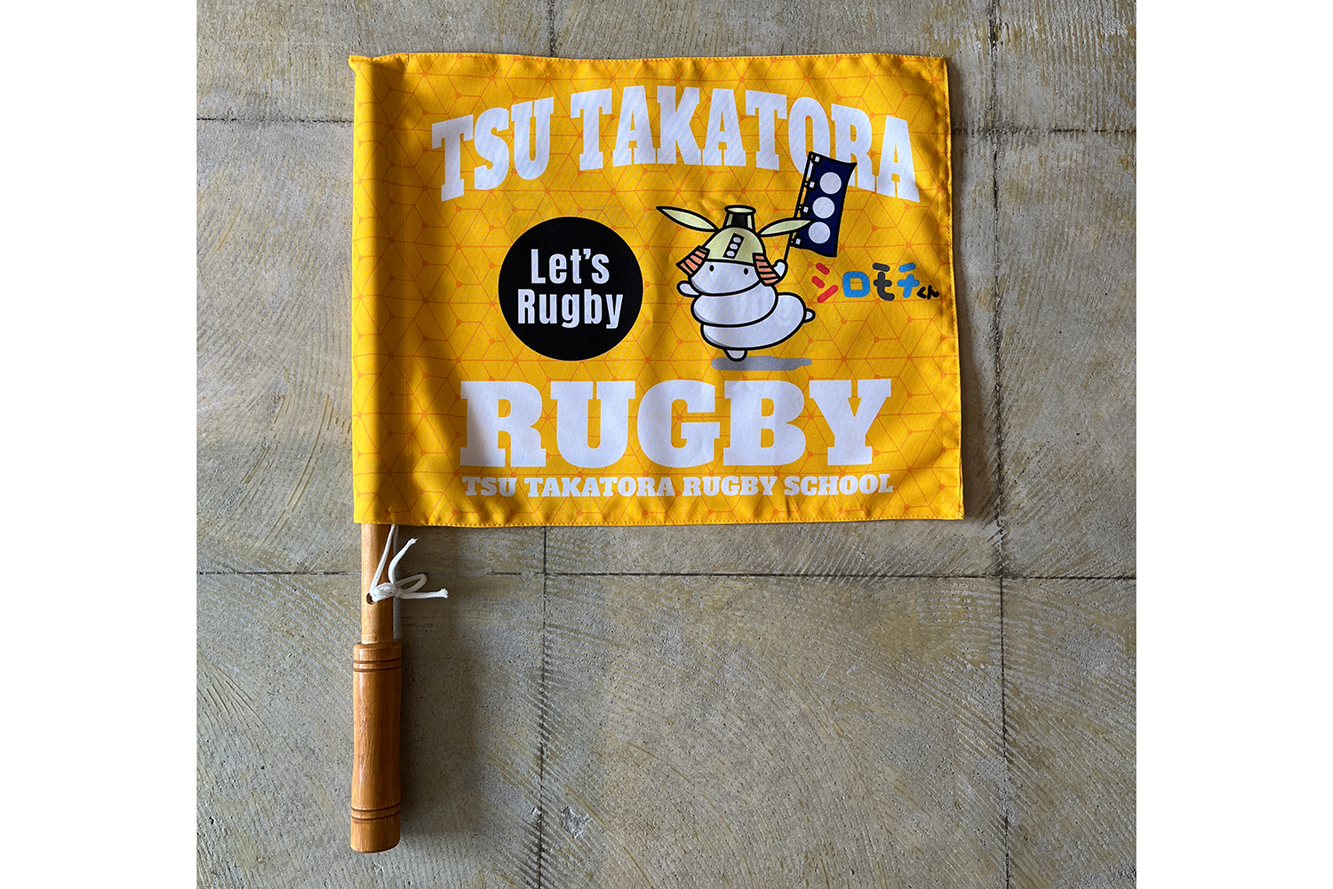 フラッグには津藩初代藩主・藤堂高虎公の逸話を基にした津市の公認キャラクター