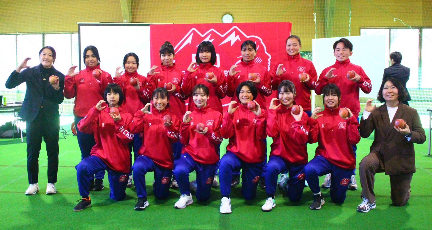 チーム名は、練習で頬をリンゴのように赤くする選手の姿に着想を得たもので、チームカラーはレッド。エンブレムには長野県が誇るアルプスの山々をデザインしました。